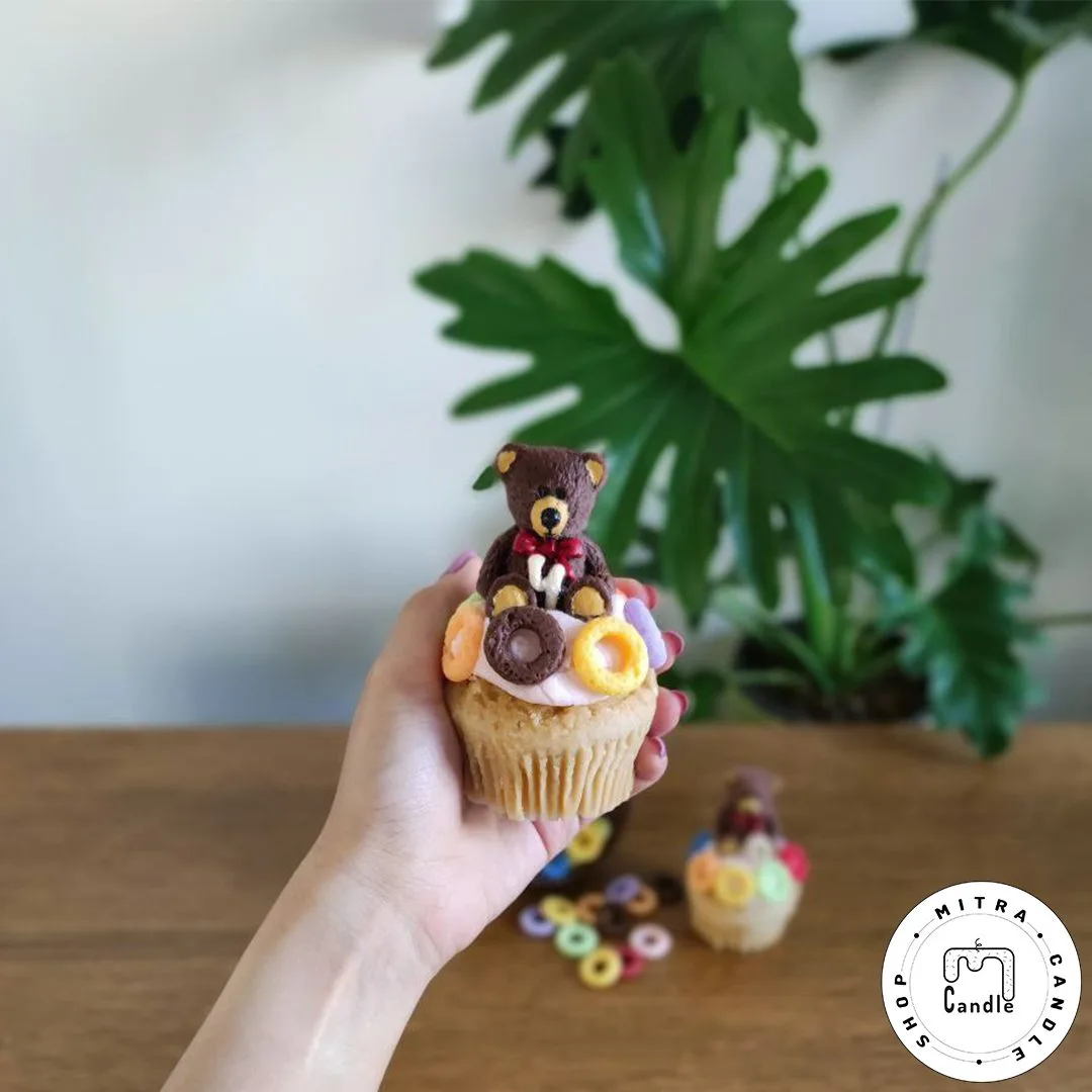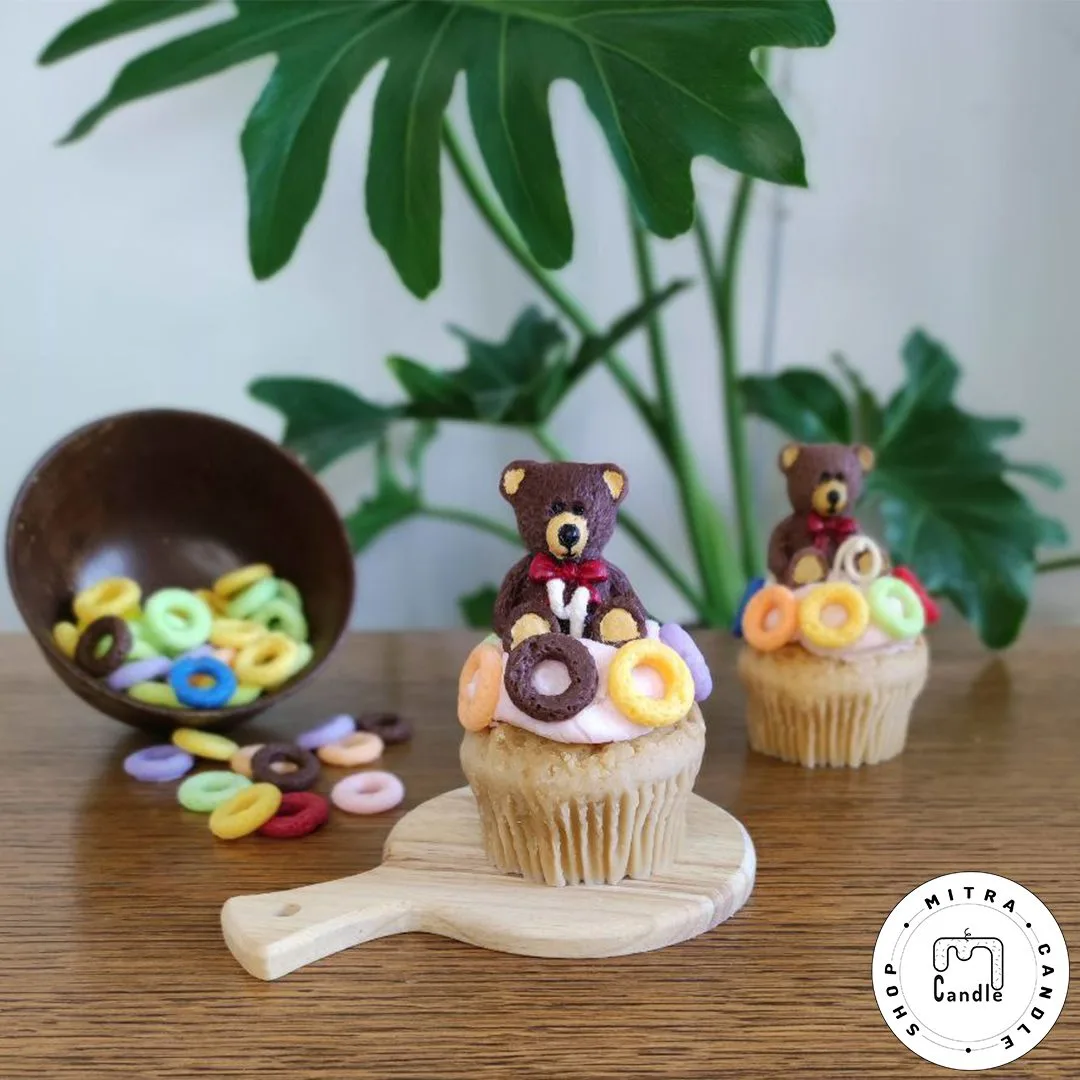 خرید اینترنتی شمع دست ساز مدل شمع کاپ کیک بزرگ خرسی مناسب دکور و هدیه دادن میباشد. تمام اجزا شمع از پارافین میباشد و ایجاد دود و بوی نامطلوب نمیکند و تا انتهای کار میسوزد. از این شمع برای تزیین در مهمانی ها و تولد میتوان استفاده کرد.