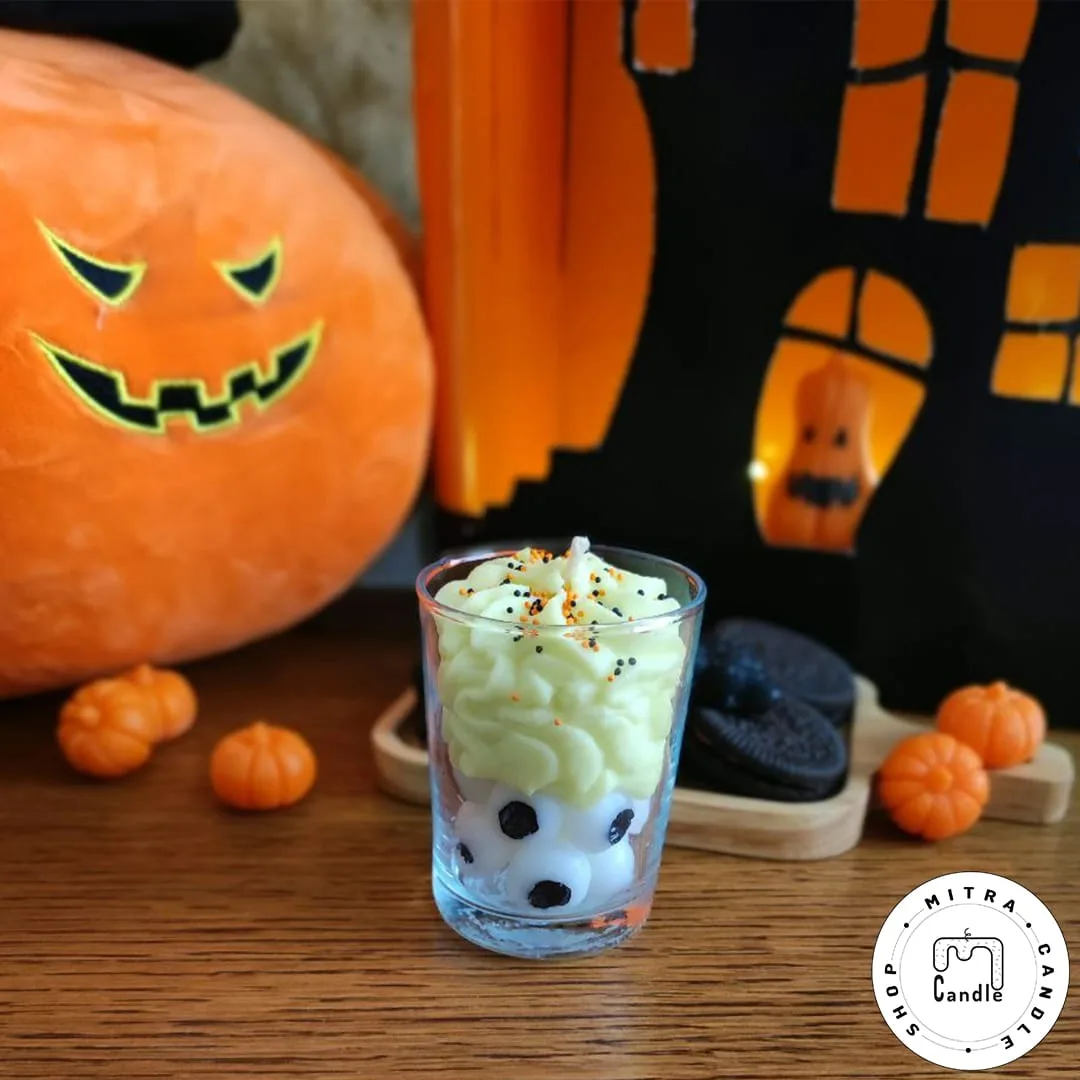 خرید اینترنتی شمع دست ساز مدل مجموعه شمع های لیوانی هالووین مناسب دکور و هدیه دادن میباشد. تمام اجزا شمع از پارافین میباشد و ایجاد دود و بوی نامطلوب نمیکند و تا انتهای کار میسوزد. از این شمع برای تزیین در مهمانی ها و تولد میتوان استفاده کرد.