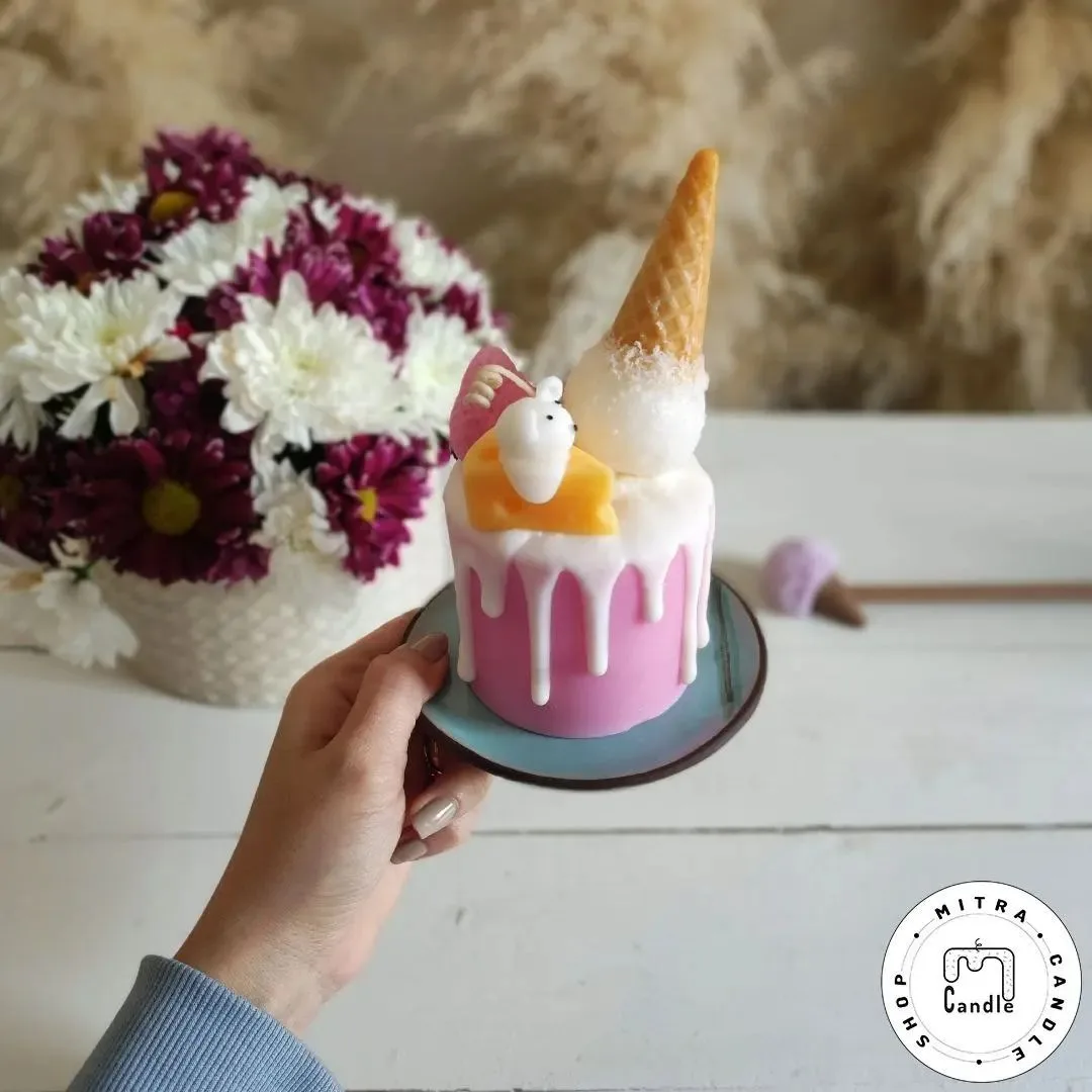 خرید اینترنتی شمع دست ساز مدل شمع کیک خامه ای با بستنی قیفی و پنیر مناسب دکور و هدیه دادن میباشد. تمام اجزا شمع از پارافین میباشد و ایجاد دود و بوی نامطلوب نمیکند و تا انتهای کار میسوزد. از این شمع برای تزیین در مهمانی ها و تولد میتوان استفاده کرد.