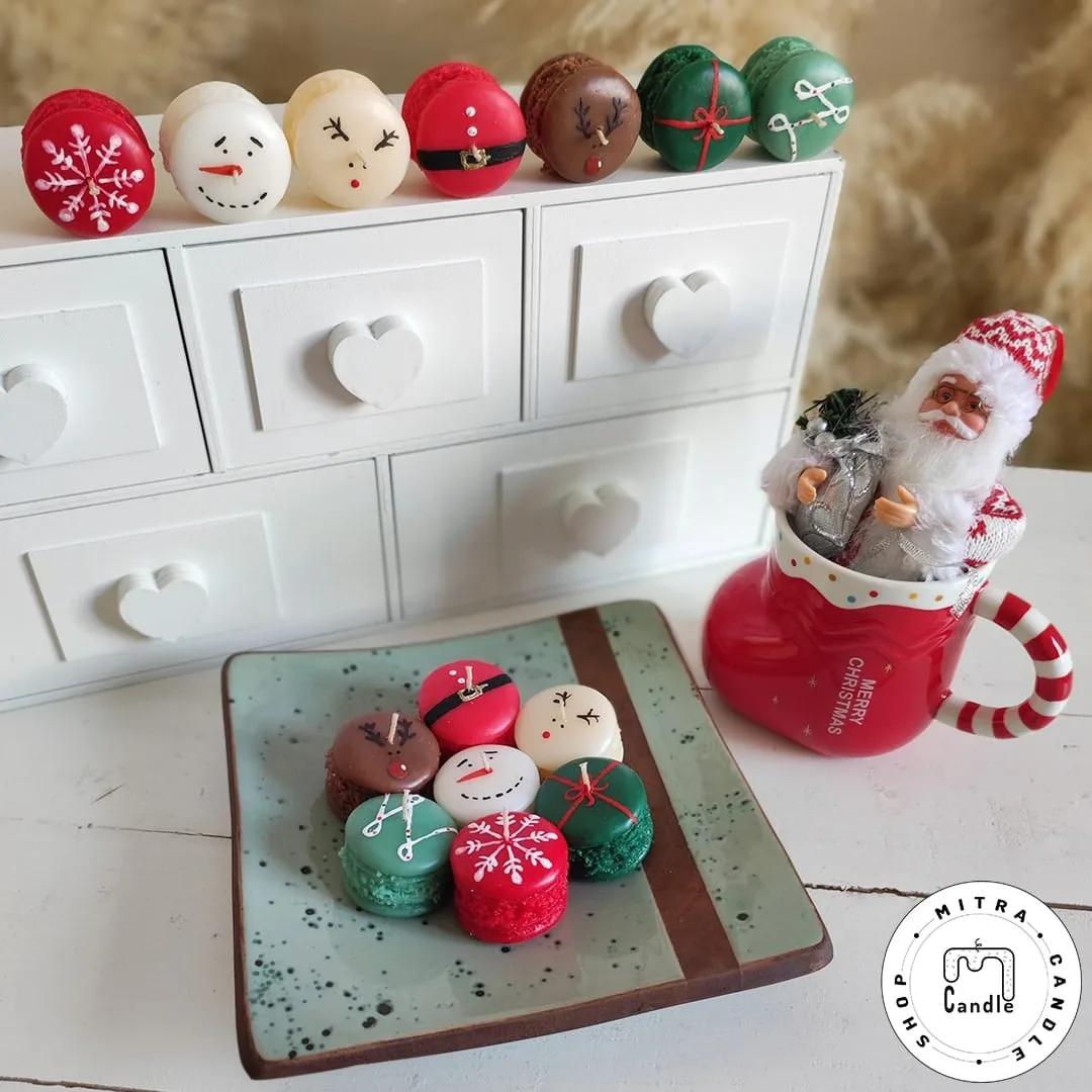 خرید اینترنتی شمع دست ساز مدل شمع ماکارون کریسمسی مناسب دکور و هدیه دادن میباشد. تمام اجزا شمع از پارافین میباشد و ایجاد دود و بوی نامطلوب نمیکند و تا انتهای کار میسوزد. از این شمع برای تزیین در مهمانی ها و تولد میتوان استفاده کرد.