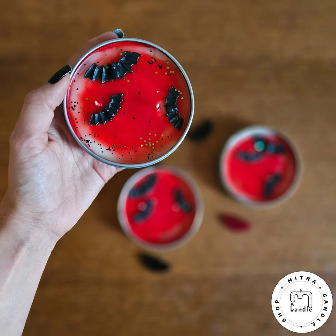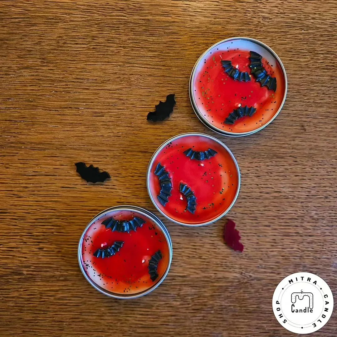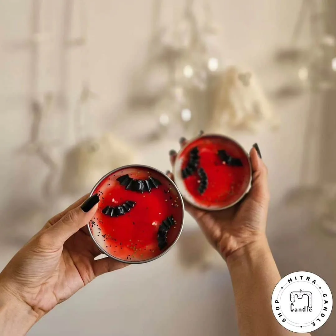 خرید اینترنتی شمع دست ساز مدل قوطی شمع خفاش هالووین مناسب دکور و هدیه دادن میباشد. تمام اجزا شمع از پارافین میباشد و ایجاد دود و بوی نامطلوب نمیکند و تا انتهای کار میسوزد. از این شمع برای تزیین در مهمانی ها و تولد میتوان استفاده کرد.