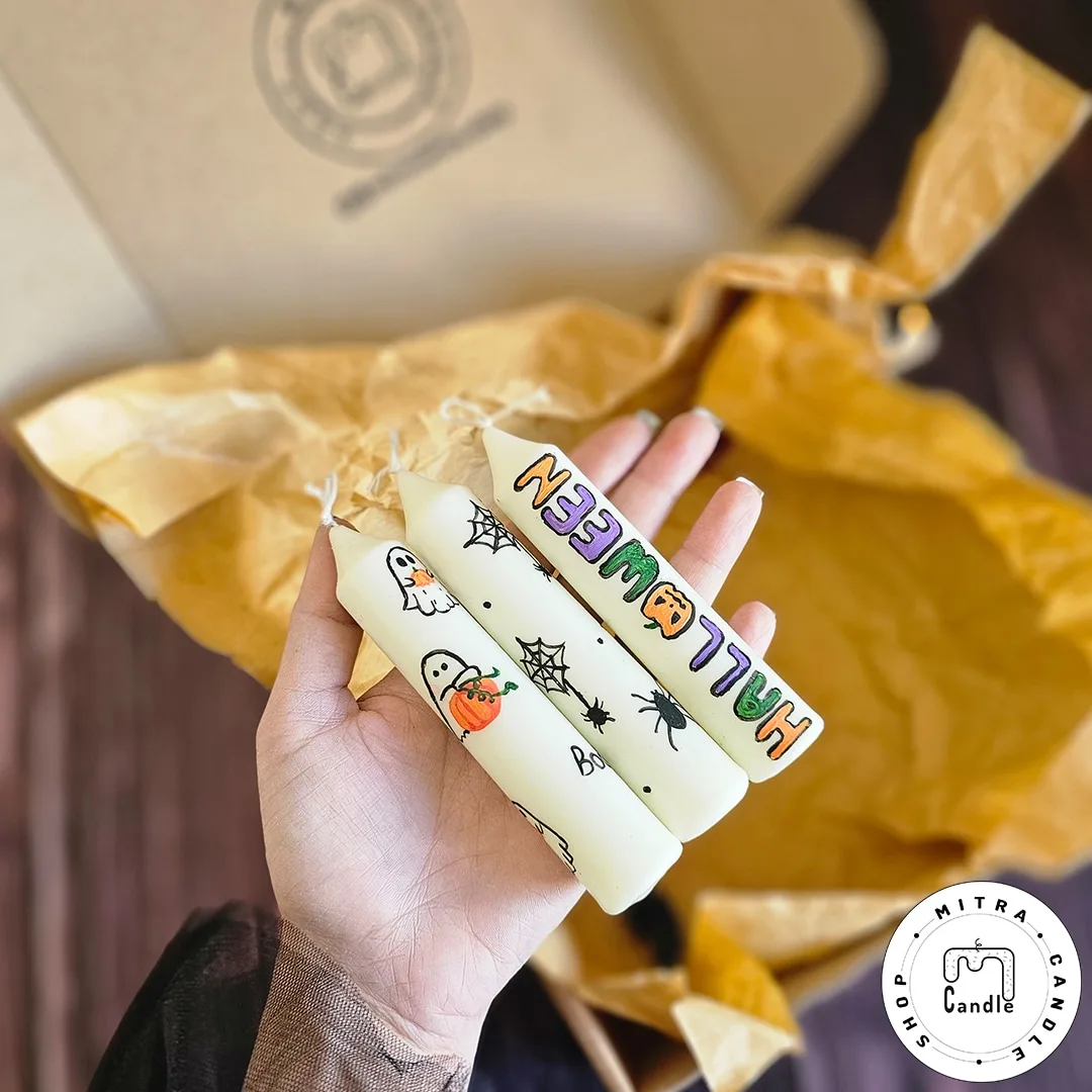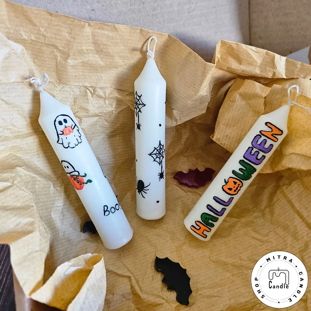 خرید اینترنتی شمع دست ساز مدل شمع پک شمع قلمی هالووین مناسب دکور و هدیه دادن میباشد. تمام اجزا شمع از پارافین میباشد و ایجاد دود و بوی نامطلوب نمیکند و تا انتهای کار میسوزد. از این شمع برای تزیین در مهمانی ها و تولد میتوان استفاده کرد.