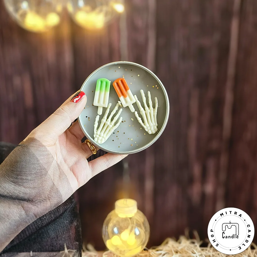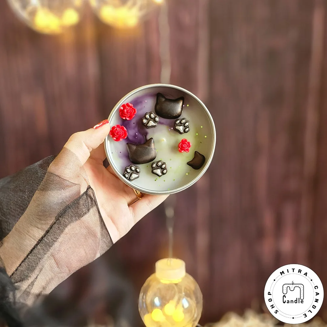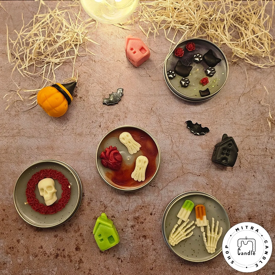 خرید اینترنتی شمع دست ساز مدل قوطی شمع هالووین مناسب دکور و هدیه دادن میباشد. تمام اجزا شمع از پارافین میباشد و ایجاد دود و بوی نامطلوب نمیکند و تا انتهای کار میسوزد. از این شمع برای تزیین در مهمانی ها و تولد میتوان استفاده کرد.