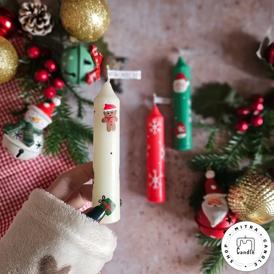 خرید اینترنتی شمع دست ساز مدل پک شمع قلمی زنجبیلی برفی مناسب دکور و هدیه دادن میباشد. تمام اجزا شمع از پارافین میباشد و ایجاد دود و بوی نامطلوب نمیکند و تا انتهای کار میسوزد. از این شمع برای تزیین در مهمانی ها و تولد میتوان استفاده کرد.