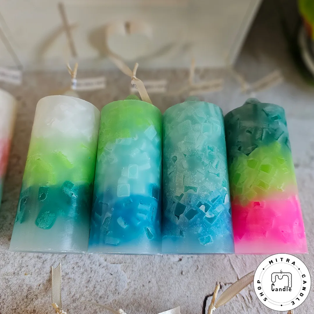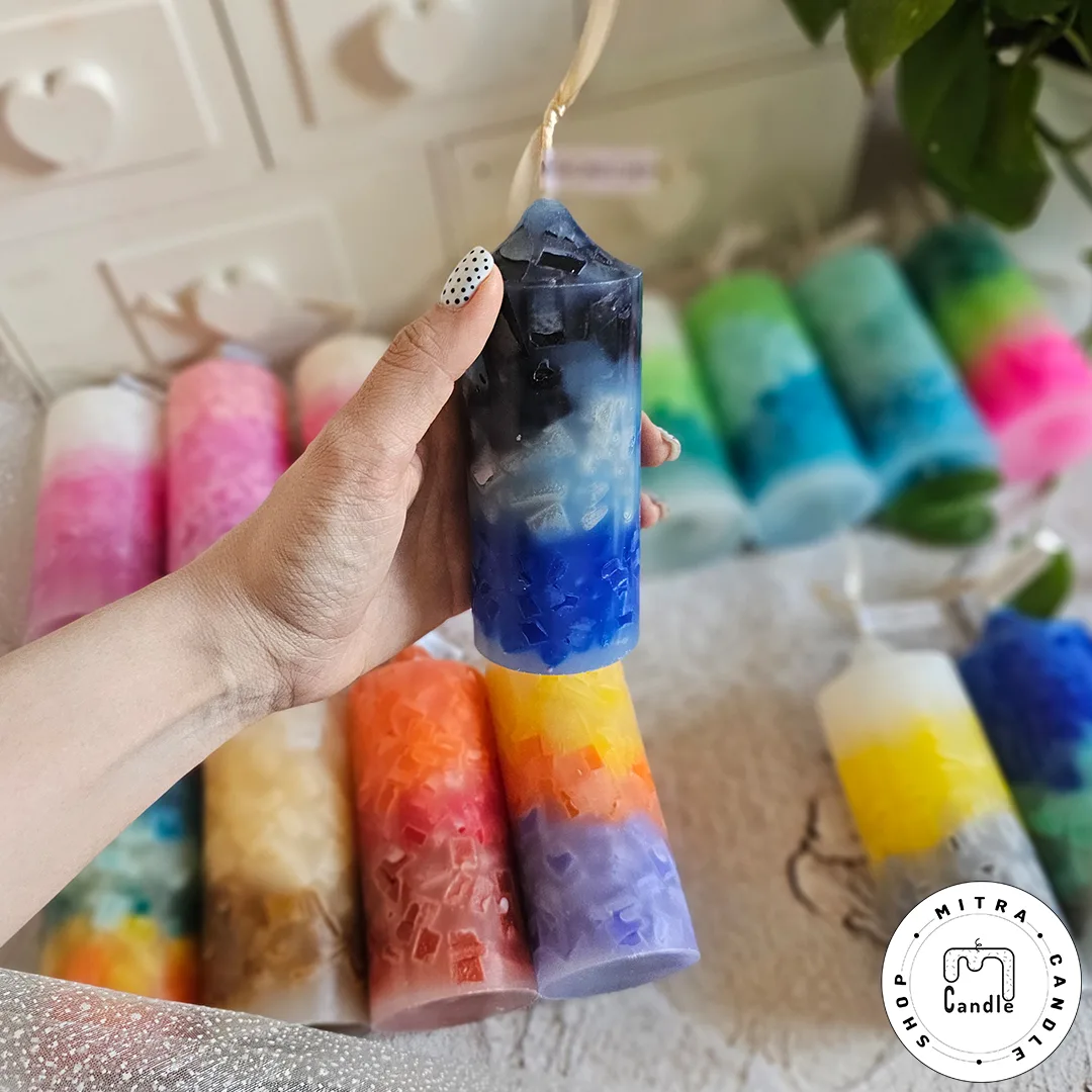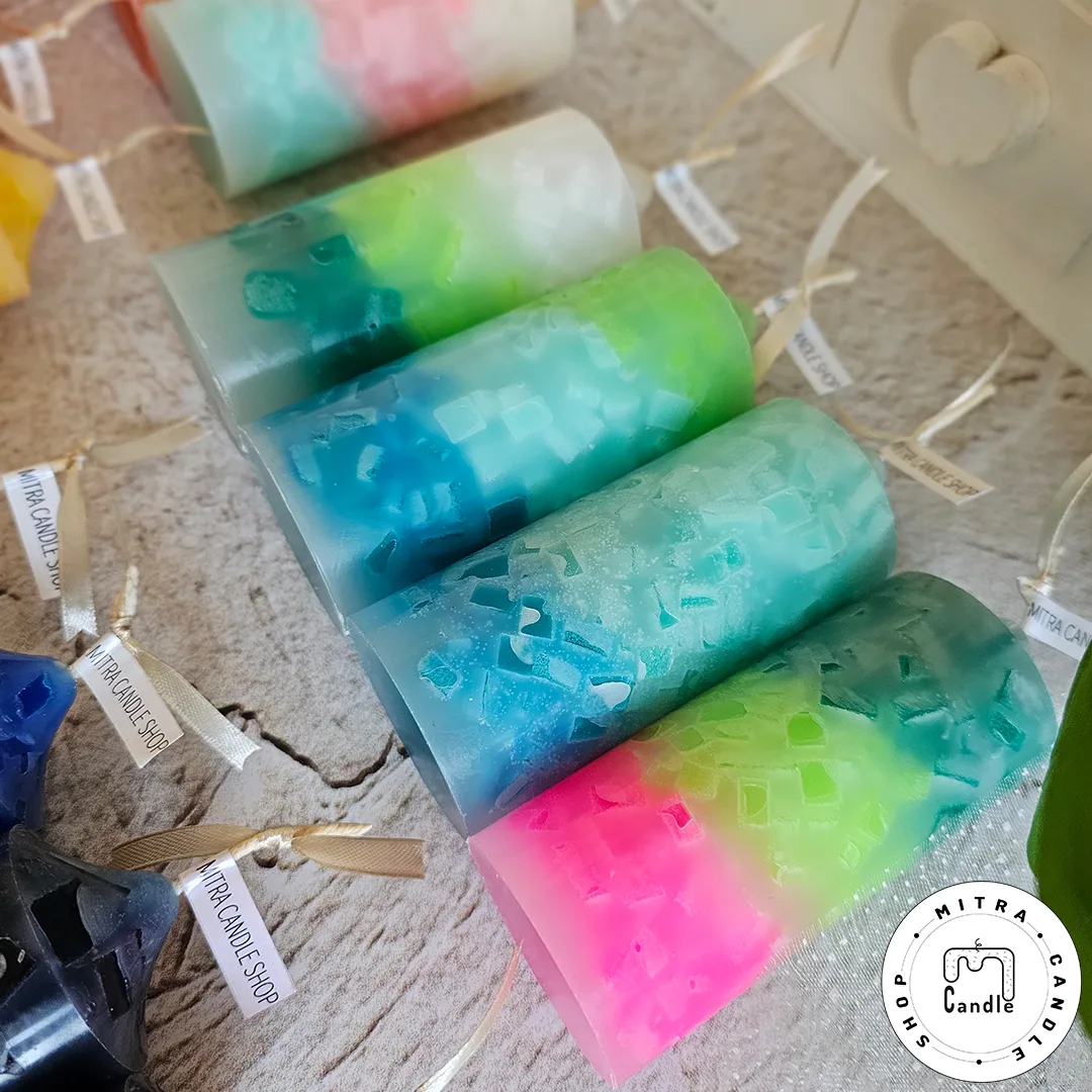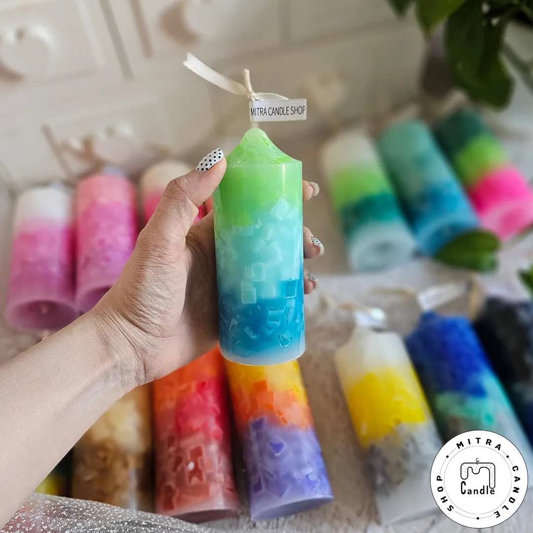 شمع رنگینکمونی با مکعبهای رنگی درونش