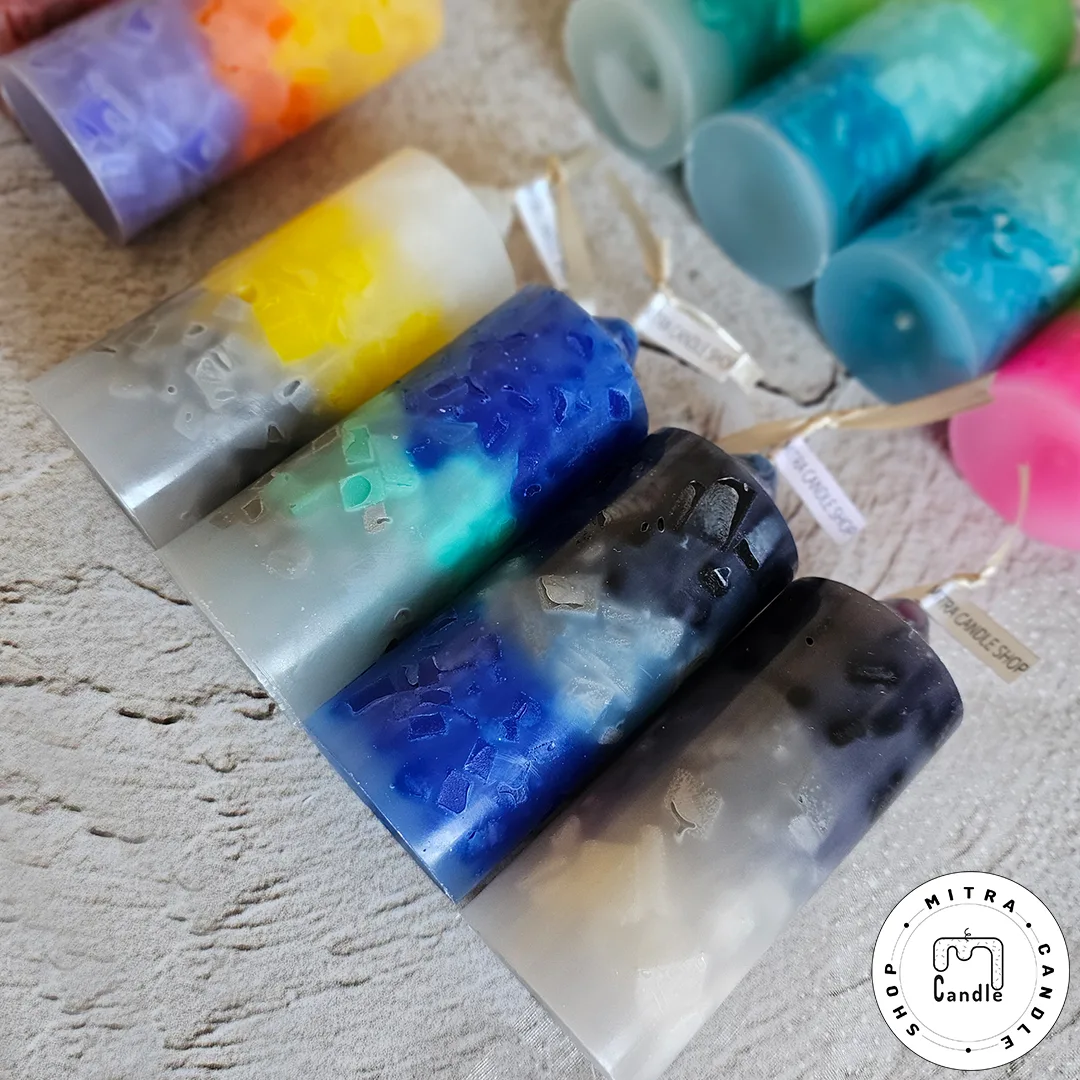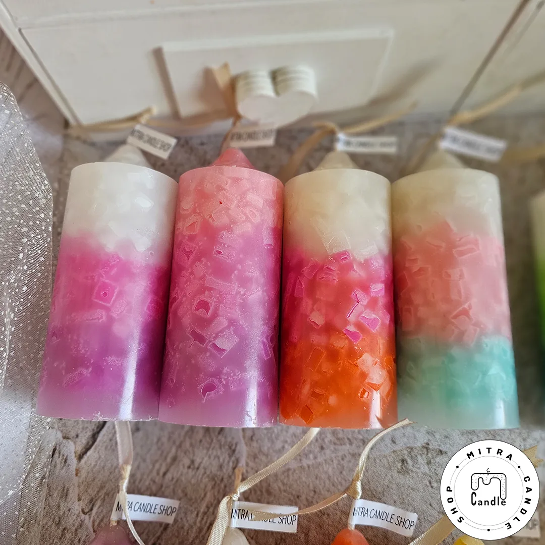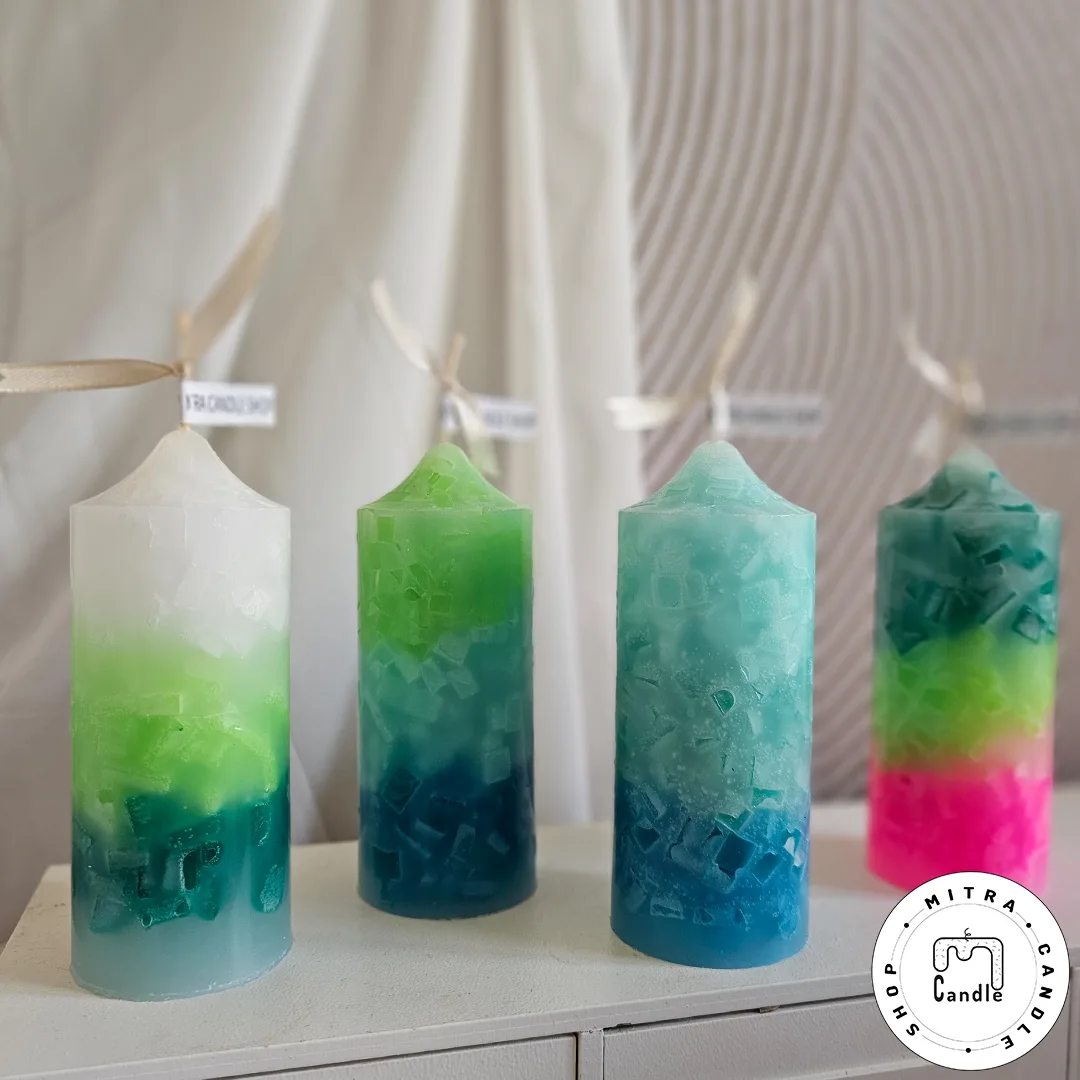 شمع رنگینکمونی با مکعبهای رنگی درونش