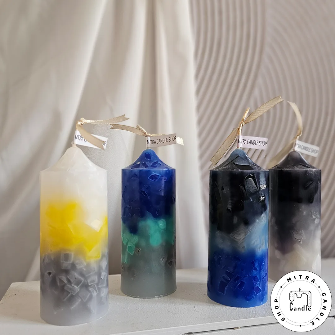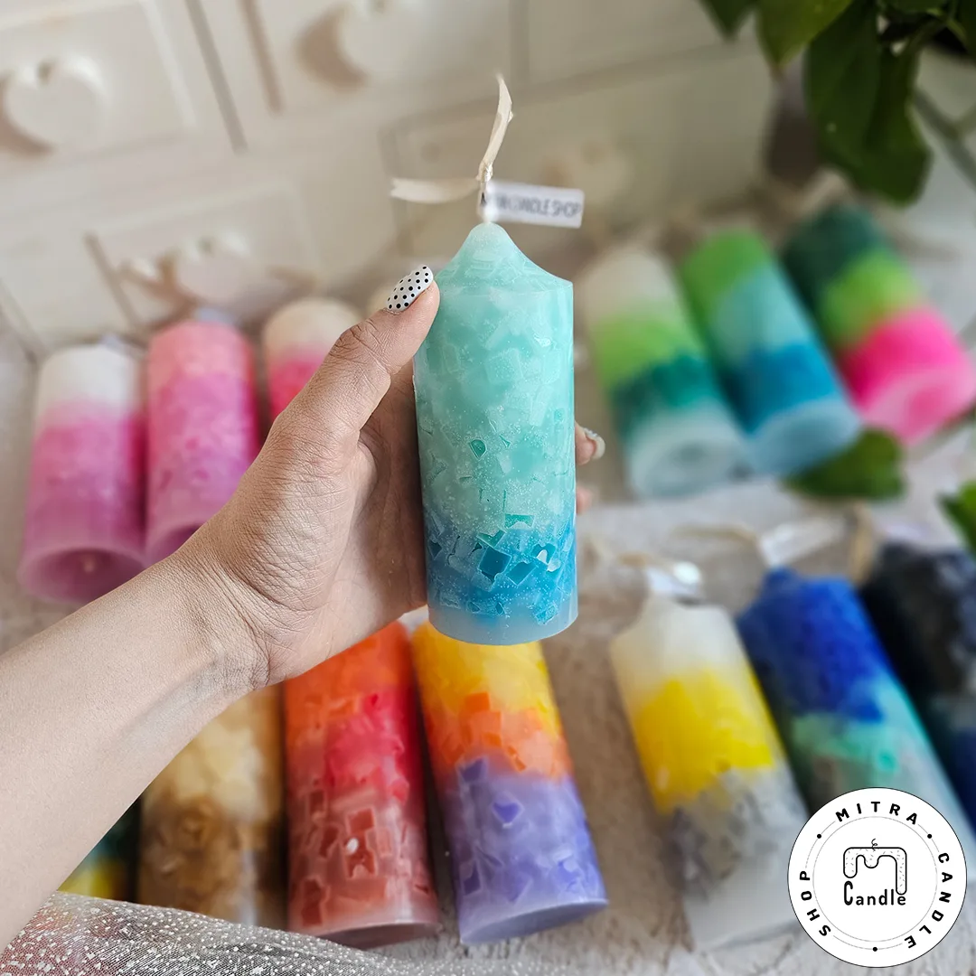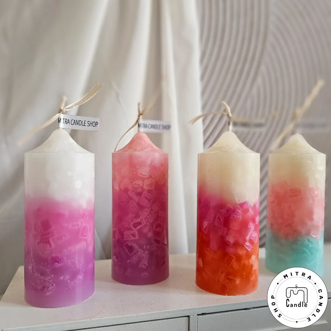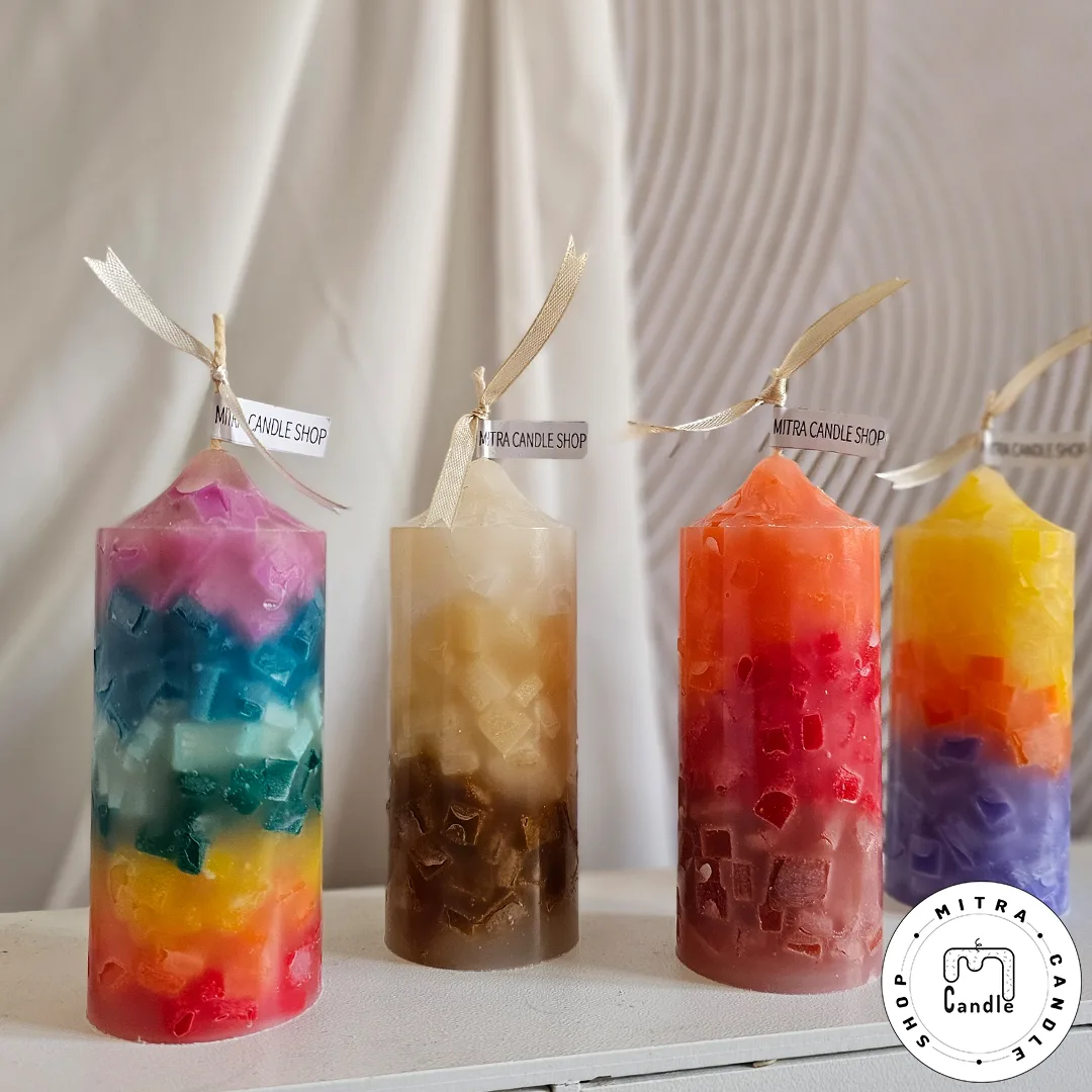 شمع رنگینکمونی با مکعبهای رنگی درونش