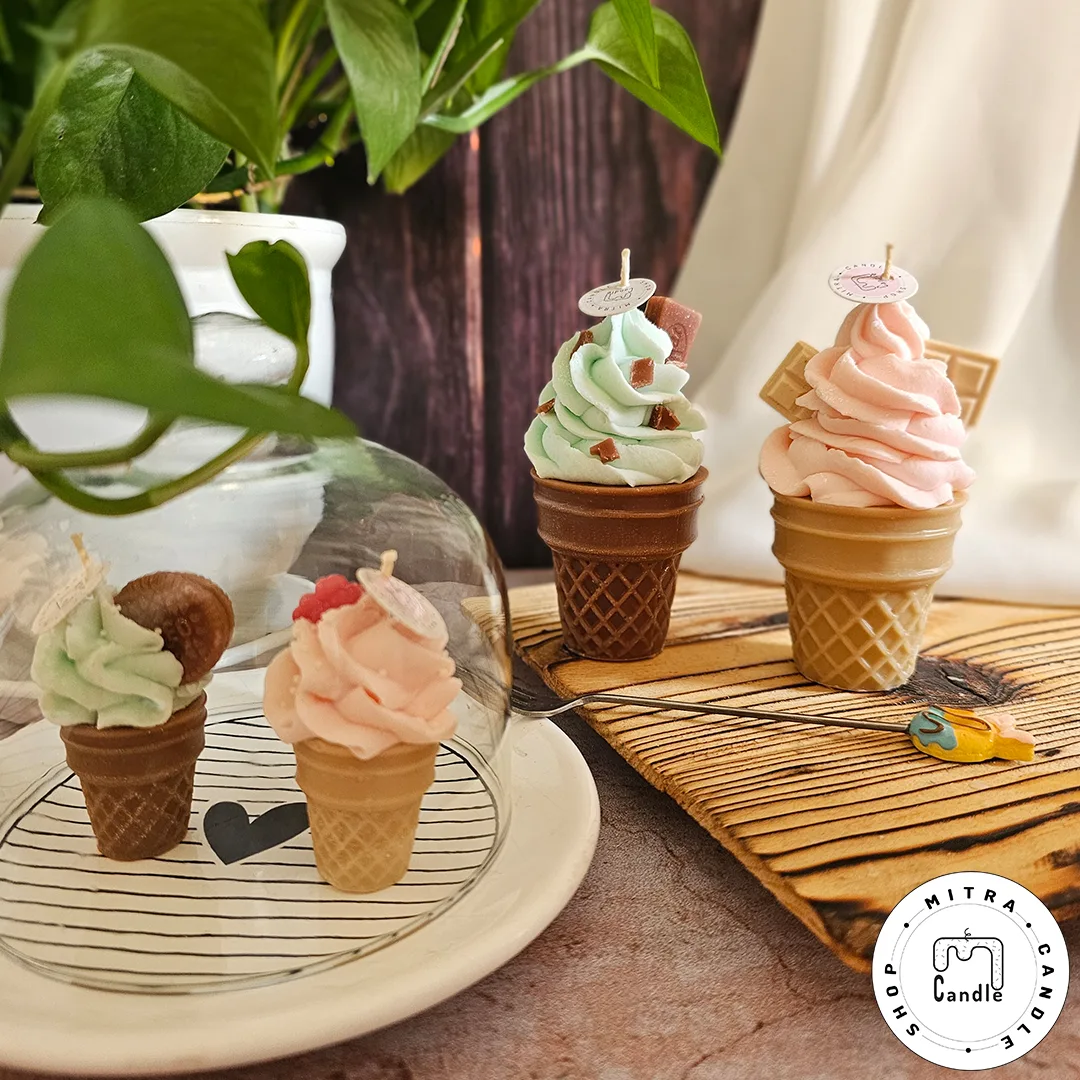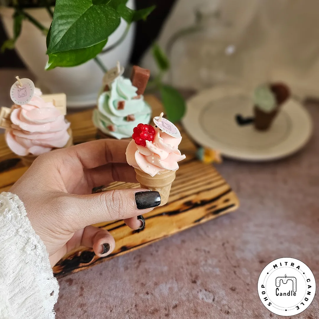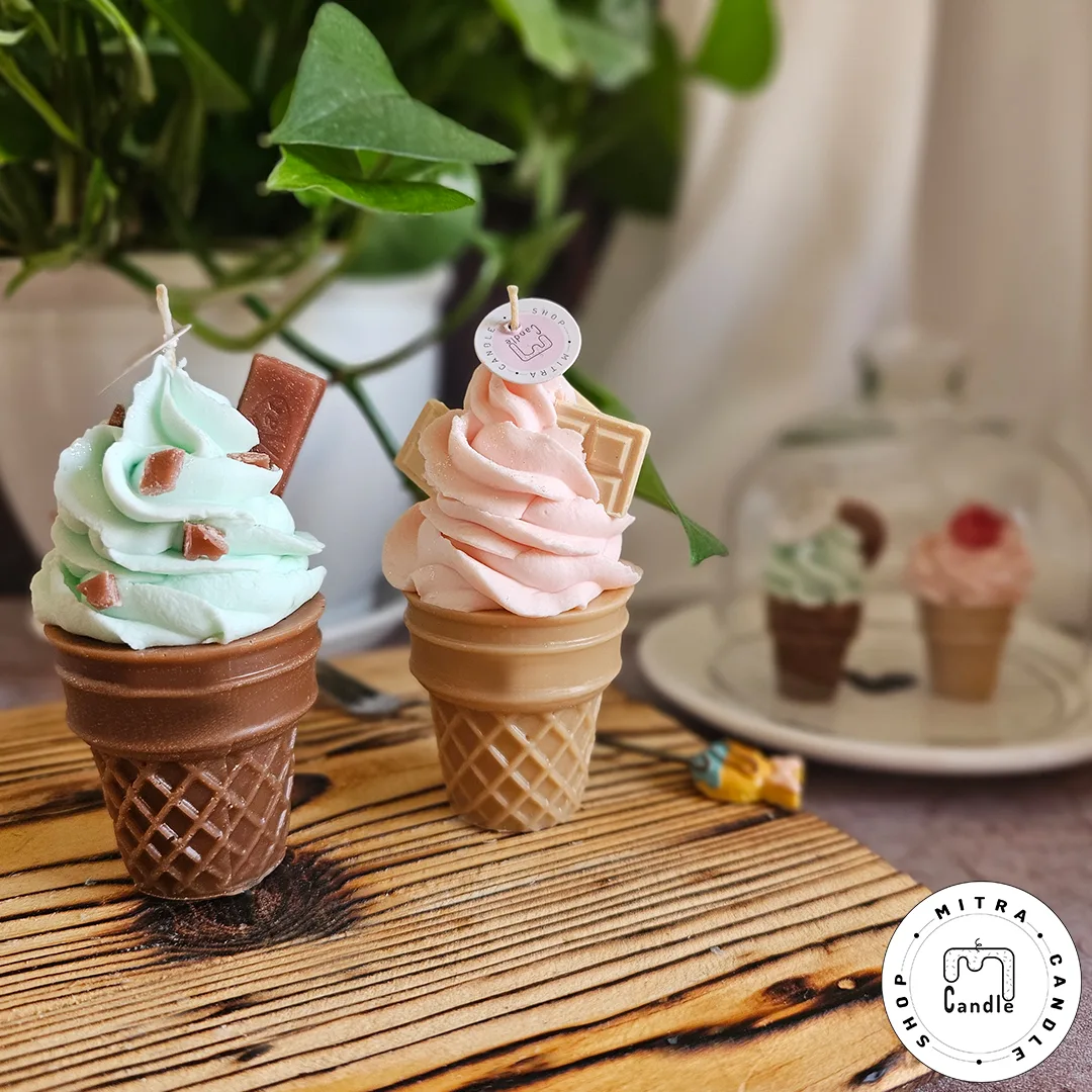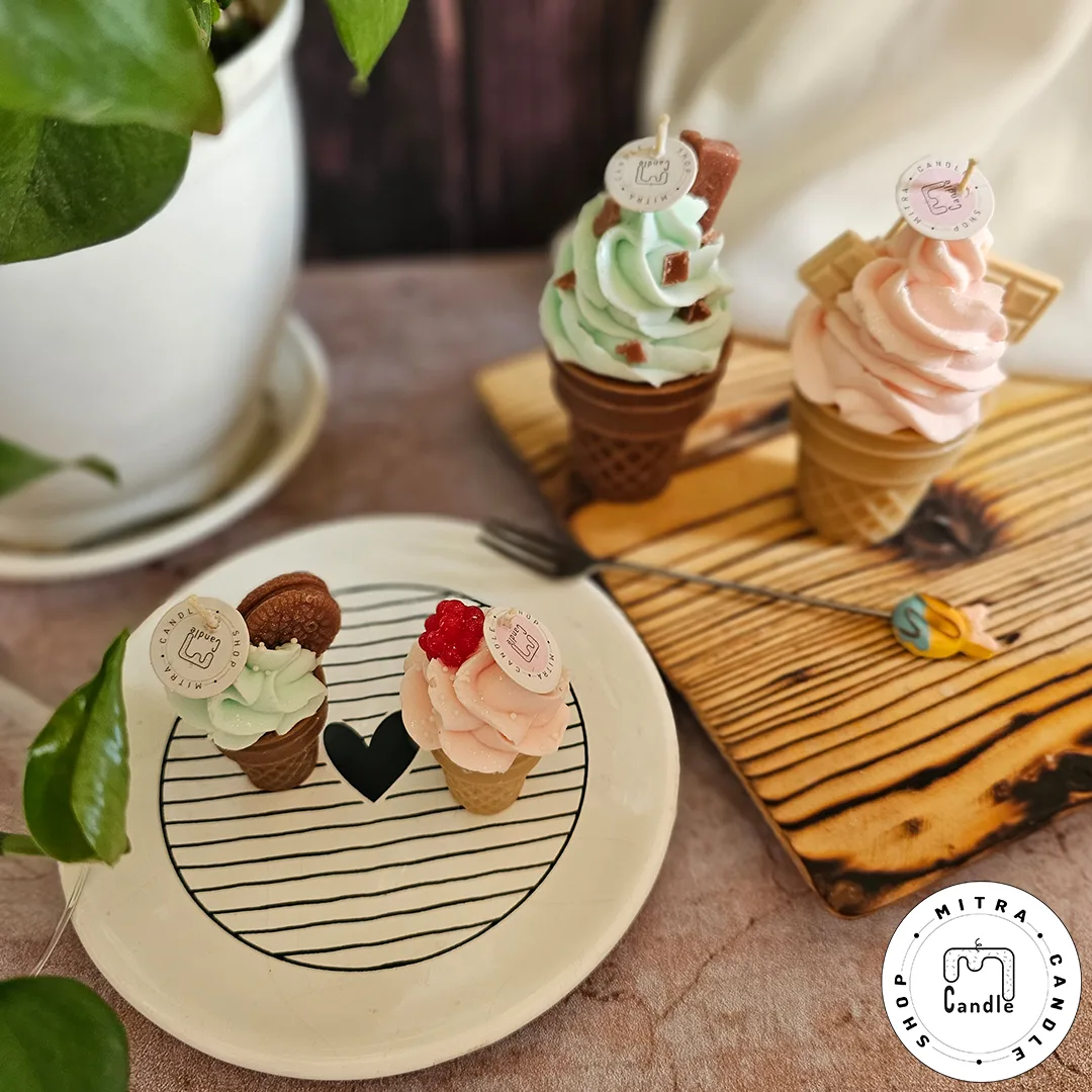 خرید اینترنتی شمع بستنی قیفی مناسب دکور و هدیه دادن میباشد. تمام اجزا شمع از پارافین میباشد و ایجاد دود و بوی نامطلوب نمیکند و تا انتهای کار میسوزد. از این شمع برای تزیین در مهمانی ها و تولد میتوان استفاده کرد.