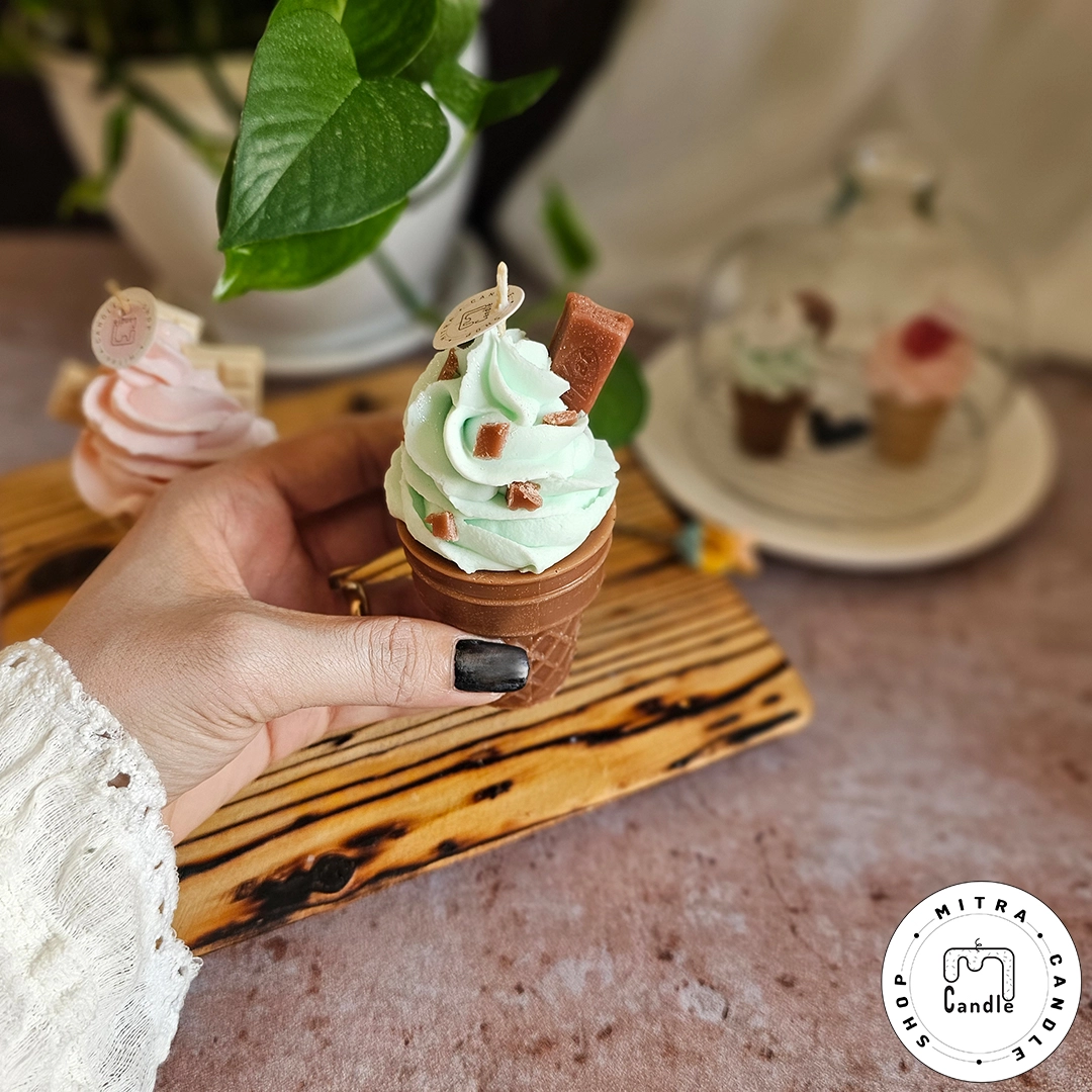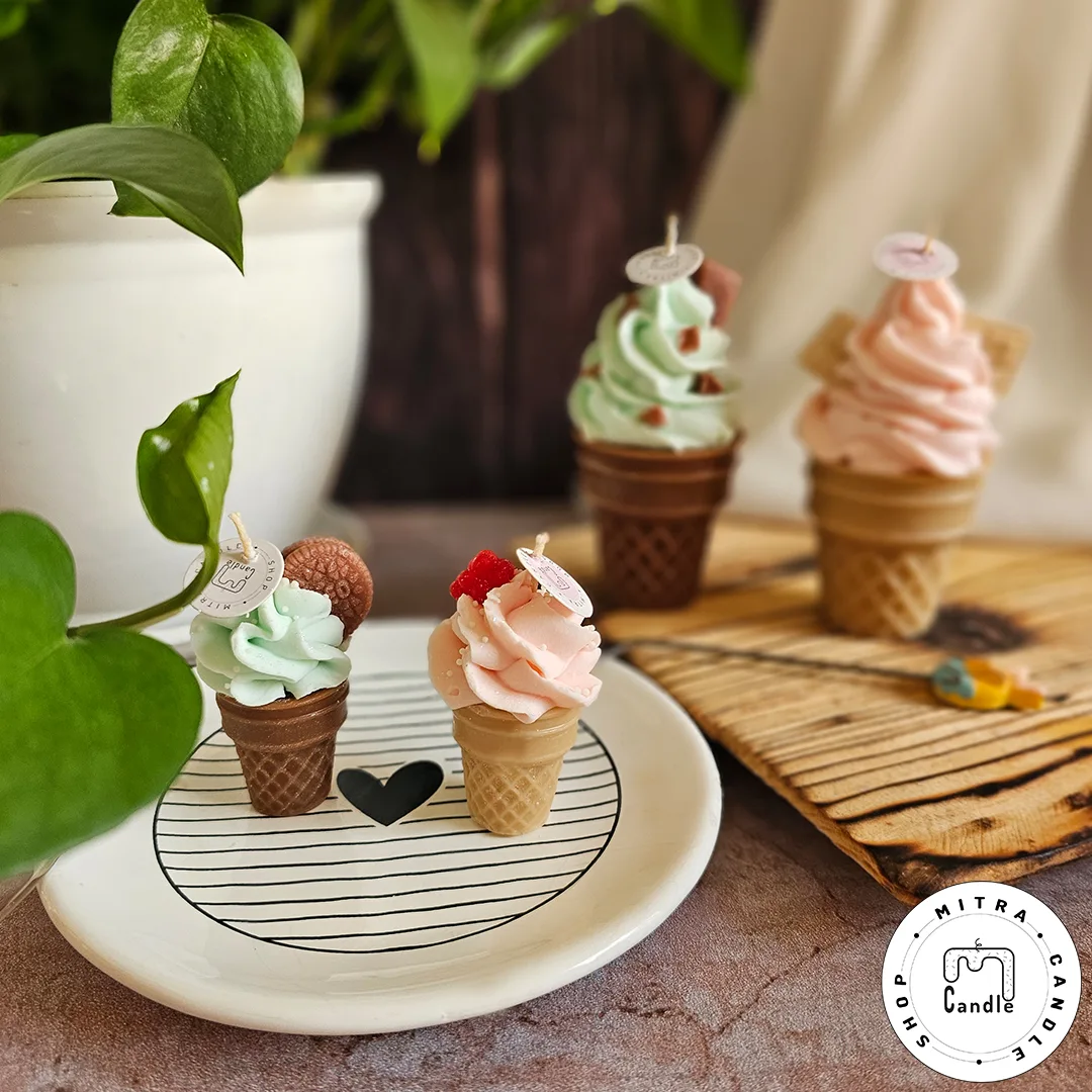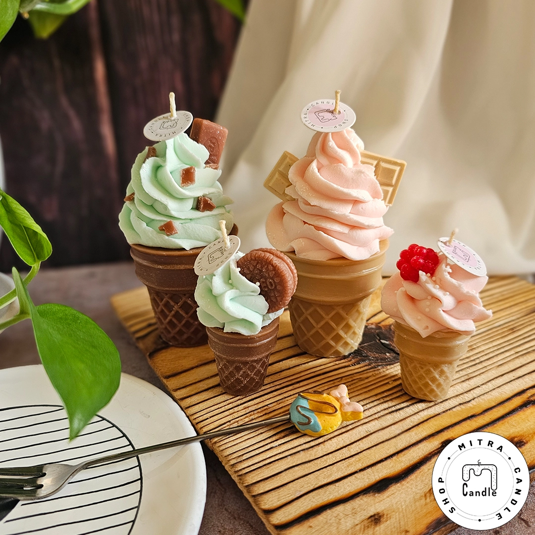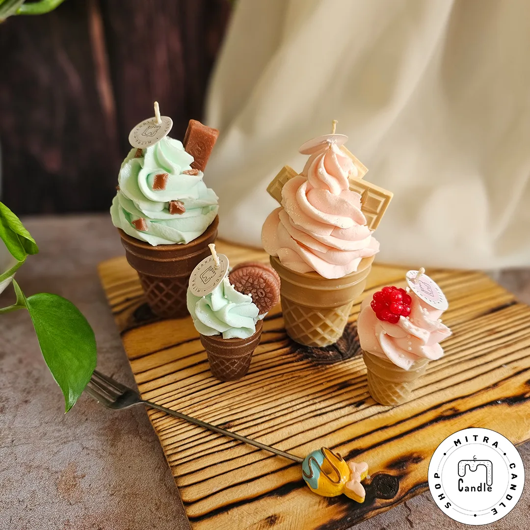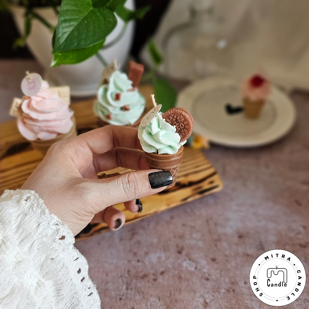 خرید اینترنتی شمع بستنی قیفی مناسب دکور و هدیه دادن میباشد. تمام اجزا شمع از پارافین میباشد و ایجاد دود و بوی نامطلوب نمیکند و تا انتهای کار میسوزد. از این شمع برای تزیین در مهمانی ها و تولد میتوان استفاده کرد.