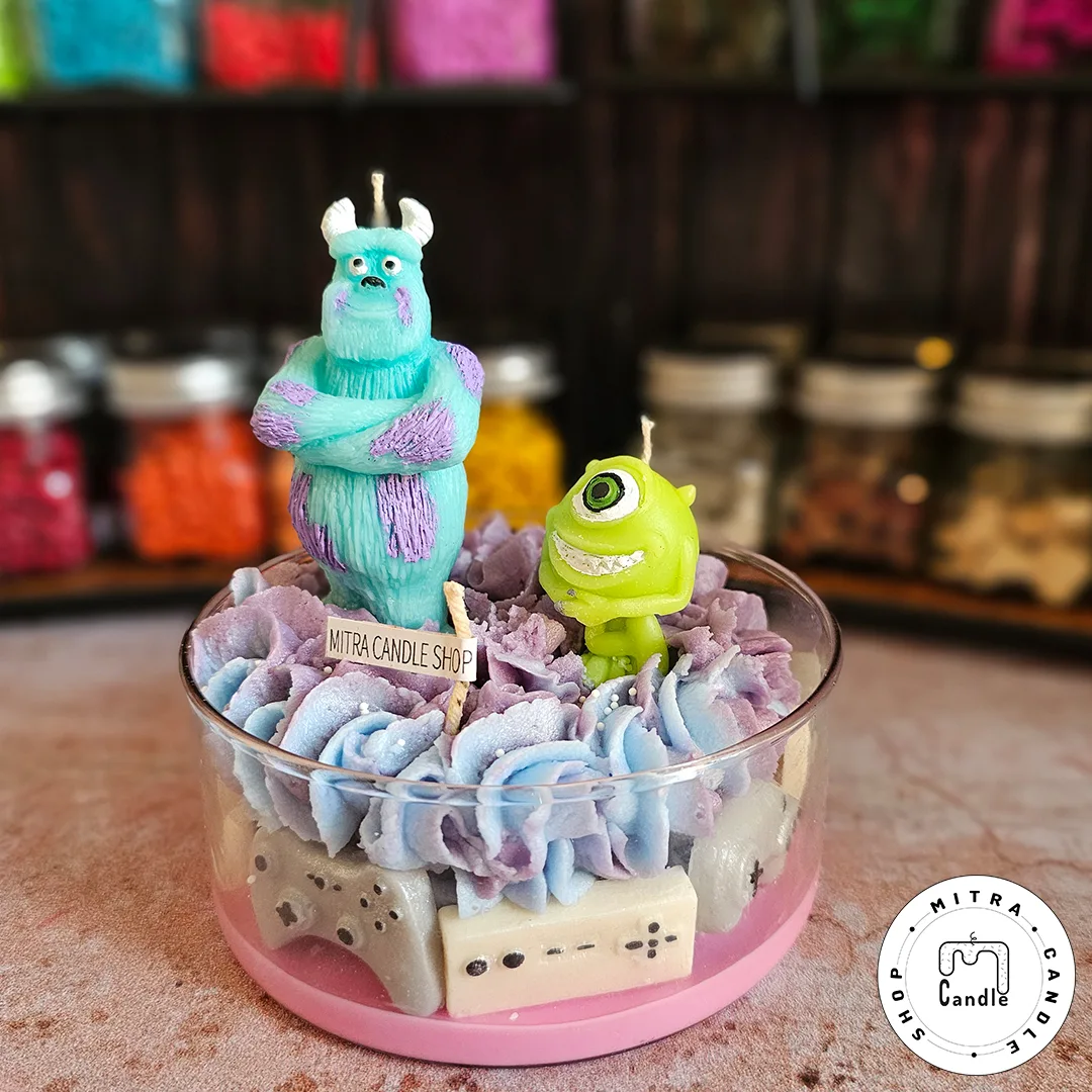 خرید اینترنتی شمع لیوانی سالیوان و مایک مناسب دکور و هدیه دادن میباشد. تمام اجزا شمع از پارافین میباشد و ایجاد دود و بوی نامطلوب نمیکند و تا انتهای کار میسوزد. از این شمع برای تزیین در مهمانی ها و تولد میتوان استفاده کرد.