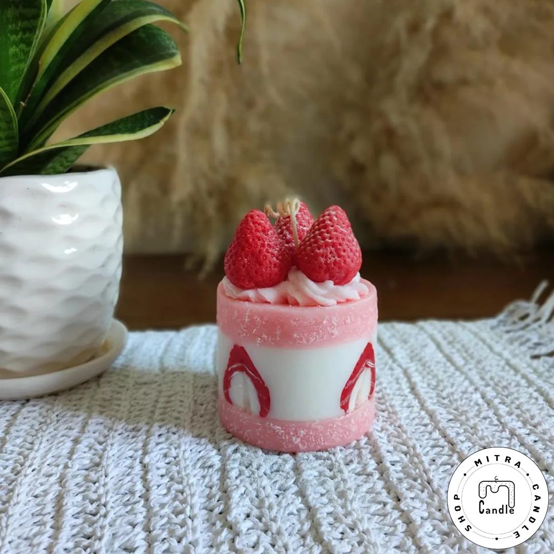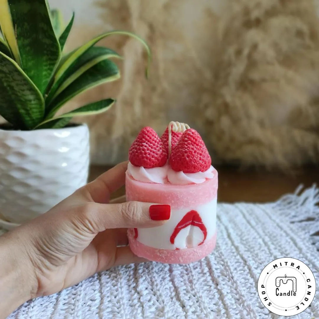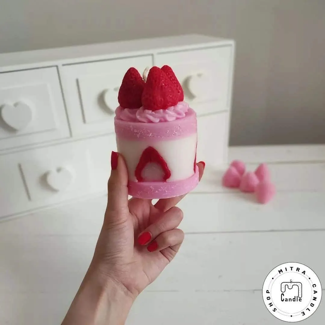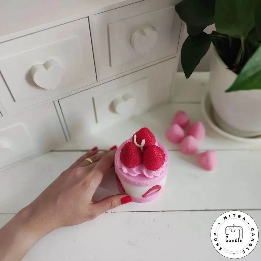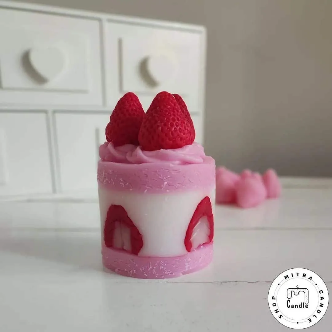 خرید اینترنتی شمع دست ساز مدل شمع کیک توت فرنگی مناسب دکور و هدیه دادن میباشد. تمام اجزا شمع از پارافین میباشد و ایجاد دود و بوی نامطلوب نمیکند و تا انتهای کار میسوزد. از این شمع برای تزیین در مهمانی ها و تولد میتوان استفاده کرد.