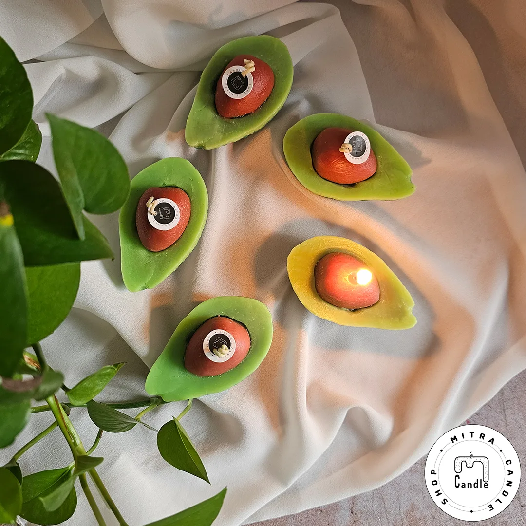 خرید اینترنتی شمع دست ساز مدل شمع آووکادو مناسب دکور و هدیه دادن میباشد. تمام اجزا شمع از پارافین میباشد و ایجاد دود و بوی نامطلوب نمیکند و تا انتهای کار میسوزد. از این شمع برای تزیین در مهمانی ها و تولد میتوان استفاده کرد.